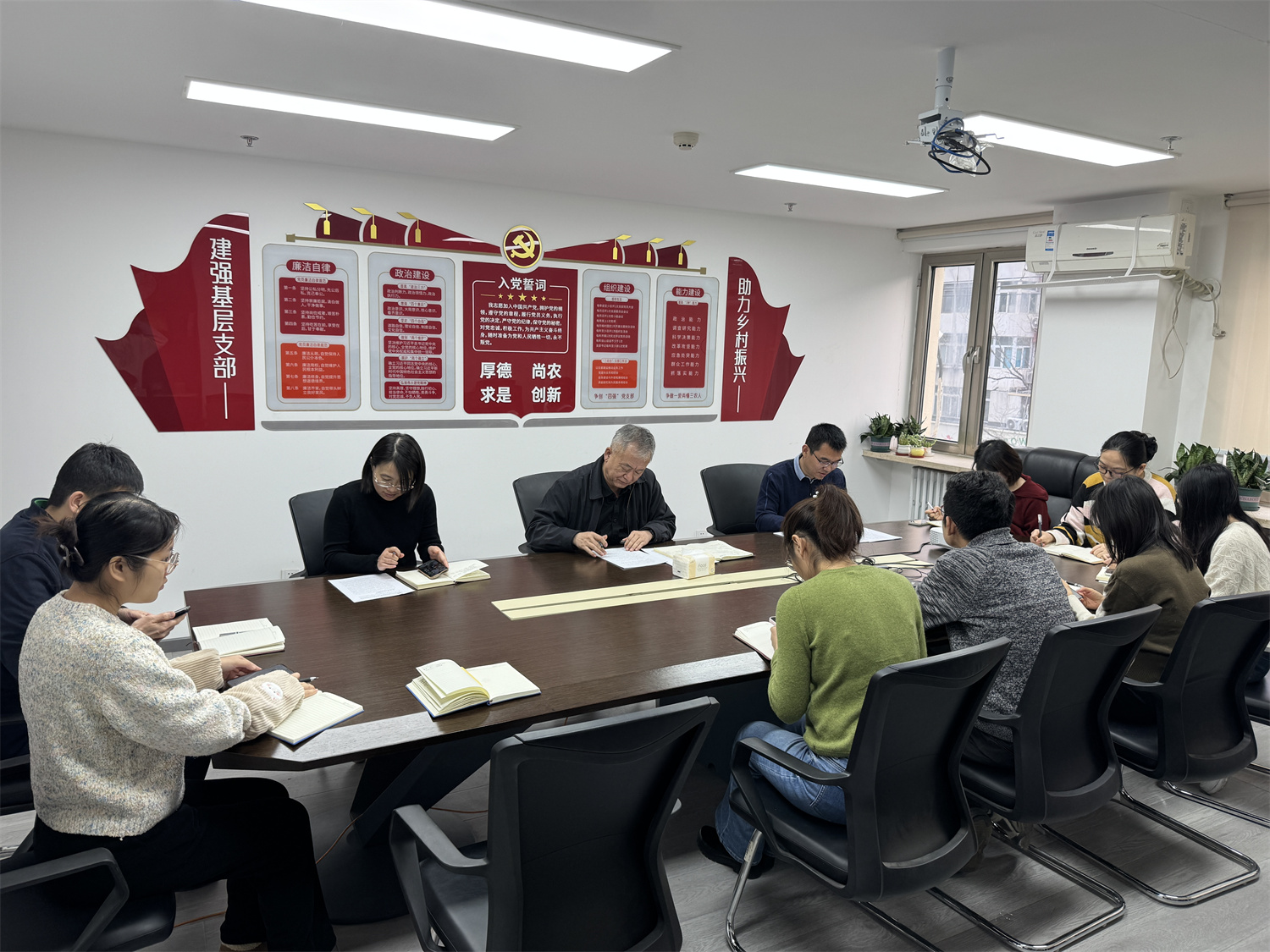2025年12月19日,區(qū)域所黨支部召開黨員大會,同步開展“黨建領(lǐng)航強根基 政策賦能促發(fā)展”主題黨日活動,全體在家黨員及干部職工參會。會議圍繞支部建設(shè)提質(zhì)、政策精神落地、黨建業(yè)務(wù)融合三大任務(wù),分兩階段推進。