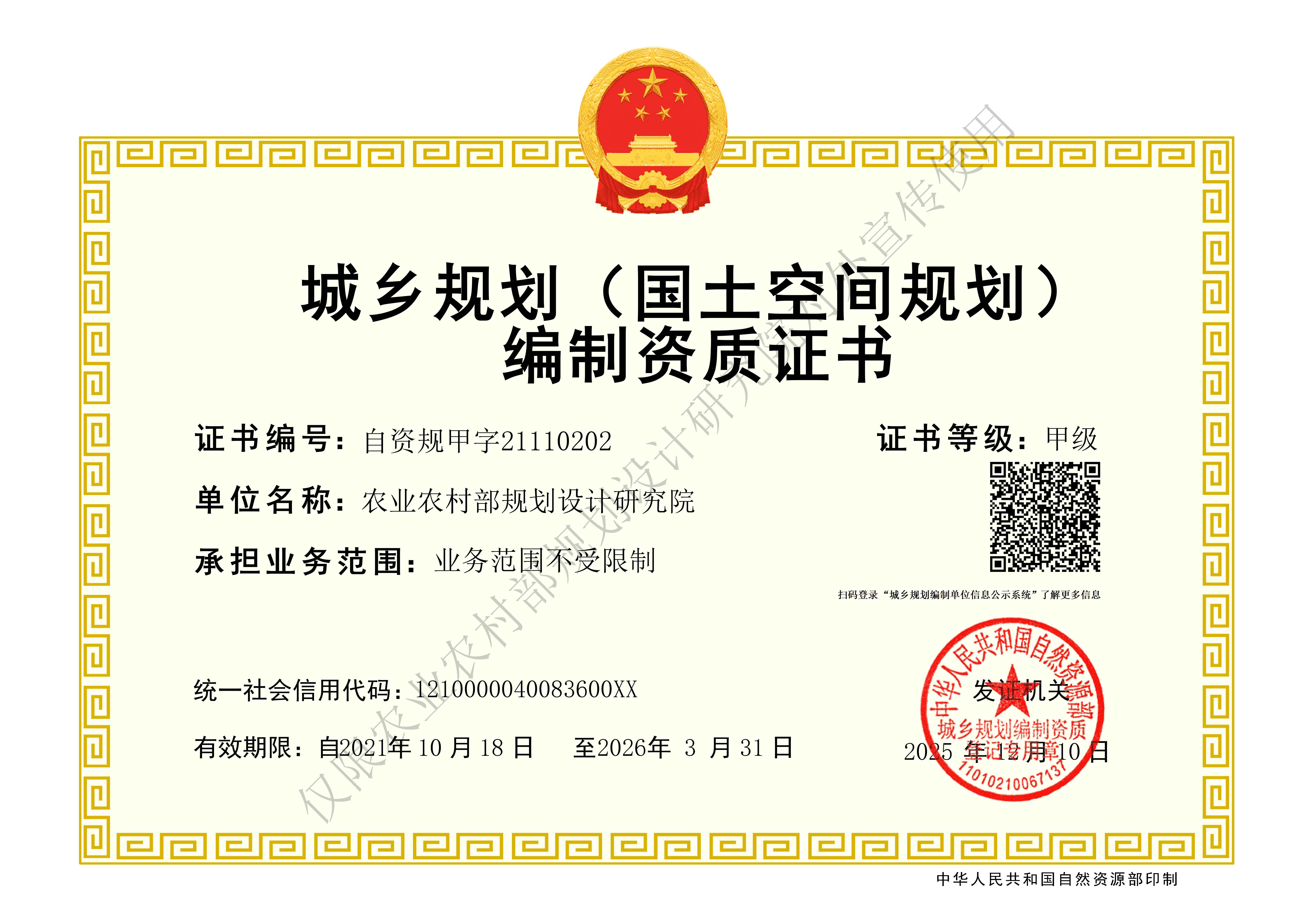 城鄉(xiāng)規(guī)劃編制甲級(jí)資質(zhì)證書