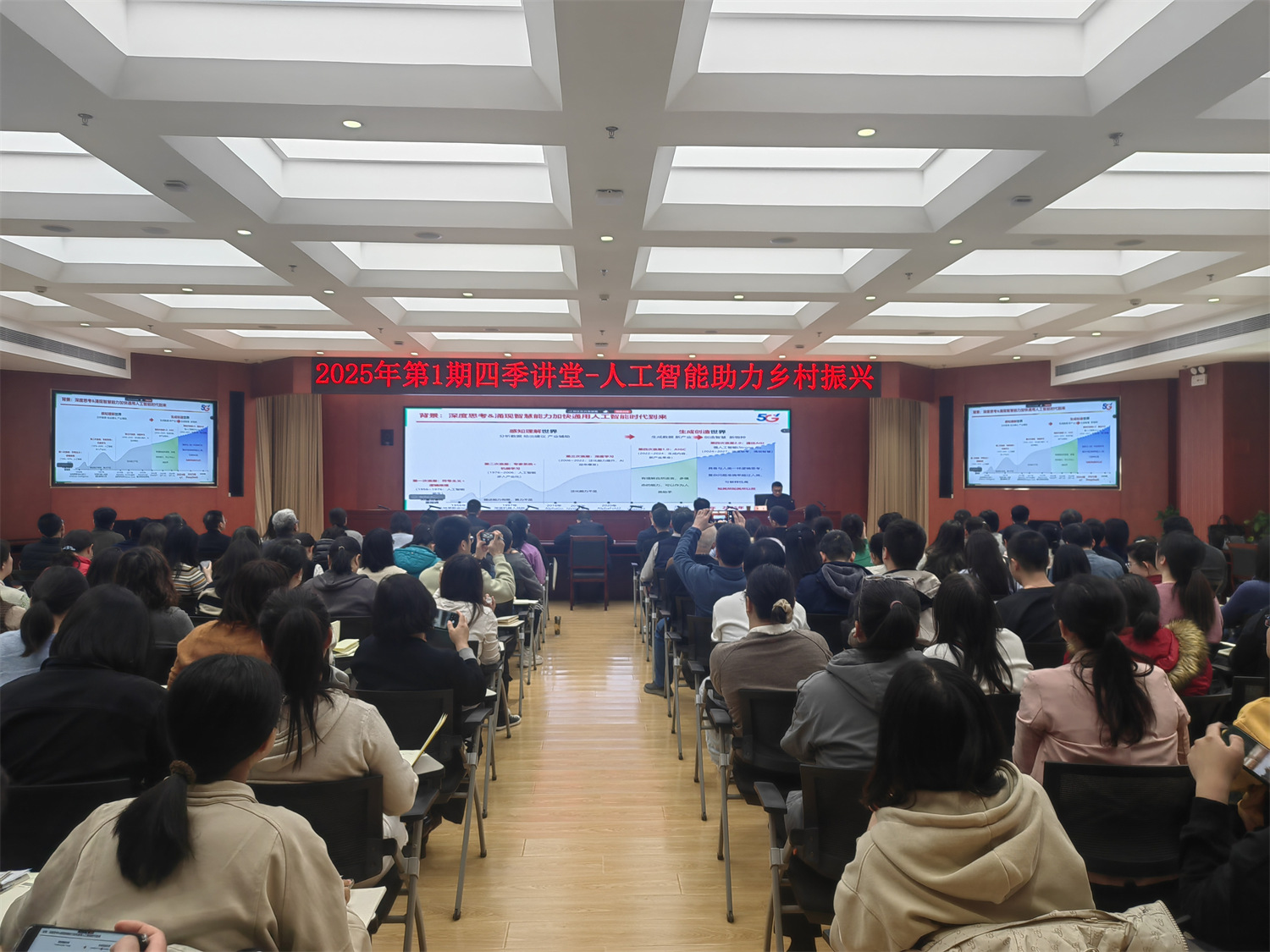 為深化人工智能技術與農業農村融合發展,落實2025年重點工作部署會精神, 3月4日,我院舉辦了“四季講堂”系列之“人工智能助力鄉村振興”專題講座。特邀中國電信集團農業農村事業部架構師郭磊擔任主講,院領導及干部職工170余人參會。