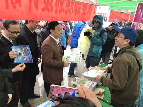 圖3 農業部屈冬玉副部長巡察手機應用服務大集,來到我院展臺認真翻閱雜志,對《農業工程技術-農業信息化》雜志的出版表示贊賞